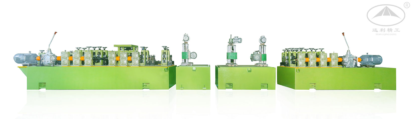 Features of the pipe line: two motors are automatically matched in speed, and gear box are adopted to enhance the torque force of transmission; vertical supports are taper roller bearing and needle bearing; 1*2 positioning sleeve can realize fast mold change and improve the precision of tube making。